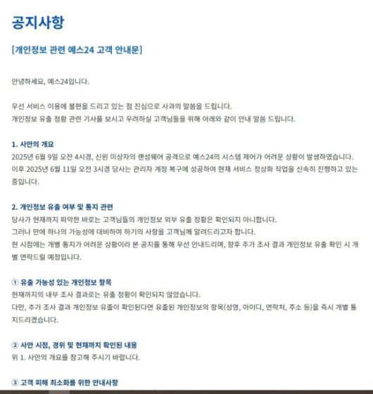 경찰은 이번 해킹 사건에 대한 내사에 착수했다. 현장 방문 조사를 통해 해킹범 추적부터 회원 개인정보 유출 여부까지 광범위하게 조사할 방침인 것으로 전해졌다. 개인정보보호위원회(개보위)도 예스24로부터 개인정보 유출 신고를 받아 지난 11일부터 관련 조사에 나선 상황이다. 경찰과 개보위의 조사가 시작됨에 따라 예스24는 뒤늦게 “향후 추가 조사 결과 개인정보 유출 확인 시 개별 연락을 드리겠다. 현재까지 파악한 바로는 고객님들의 개인정보 외부 유출 정황은 확인되지 않았다. 만에 하나의 가능성을 대비해 알려드리는 것”이라는 공지사항을 올렸다.