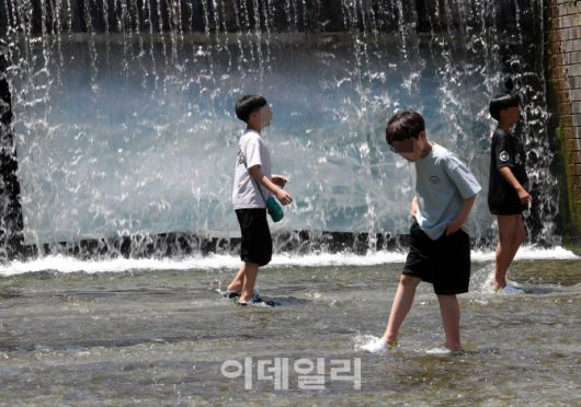 [이데일리 김태형 기자] 낮 최고기온 30도를 보인 11일 서울 청계천에서 학생들이 물놀이를 하고 있다. 서울시는 청계천 복원 20주년을 맞아 22일까지 청계폭포 인근 청계천 상류 구간에서 시민 물놀이 공간을 개방하는 ‘청계천 물 첨벙첨벙’ 행사를 진행한다.