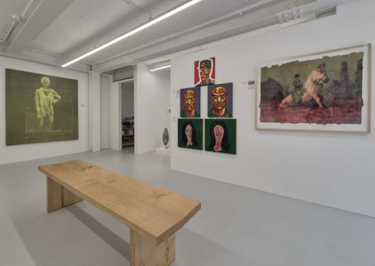 서울 성수동의 갤러리 '디스코스 온 아트' 전시전경. 왼쪽부터 이겨레의 '방문자', 서용선의 '남녘사람 북녘사람'(위), 장규돈의 '머리', 김남표의 '파리의 밤은 짧다 #1' 권근영 기자 |