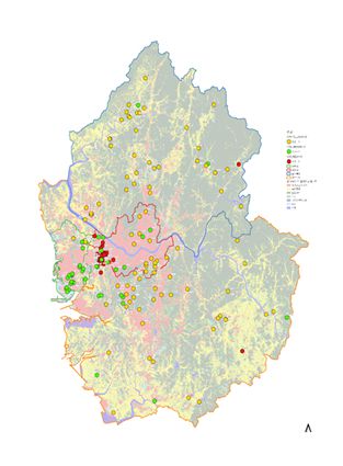 이 지도는 도시에 사는 야생 너구리를 과학적으로 관리하기 위해 수도권 너구리의 유전적 특성과 행동권을 분석한 것이다. 수도권 너구리 226개체를 분석한 결과 '인천과 서울 서부 및 경기 남서부 등 그 인접지', '서울 강서·양천·구로', '나머지 경기 북부' 등 3개 지역별로 개체군이 분리됐다.