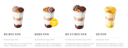 팥빙 젤라또 파르페는 팥, 떡, 시리얼, 젤라또가 조합된 여름 시즌 디저트로, 출시 한 달여 만에 누적 120만 잔 이상이 판매되는 등 큰 인기를 끌고 있다.