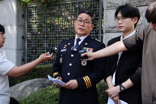 전 영등포경찰서 형사과장 백해룡 경정이 12일 서울 서초구 대검찰청 앞에서 기자회견을 열고 '인천 세관 공무원 마약 밀수 연루 의혹' 사건을 수사하는 대검찰청 합동수사팀 출범을 규탄했다. 연합뉴스 |