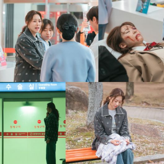 가장 먼저 눈길을 끄는 것은 병원 복도에서 의료진을 향해 간절하게 호소하고 있는 설희의 모습이다. 설희의 흐트러진 머리와 초점 잃은 눈빛, 그리고 눈물범벅이 된 표정만으로도 딸 미소가 위급한 상황이 닥쳤음을 짐작하게 한다.