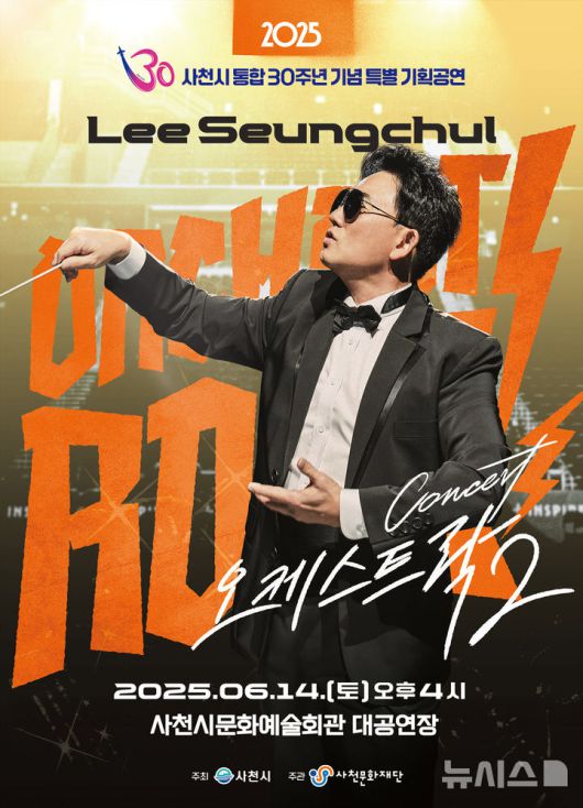 사천문화재단은 사천시 통합 30주년을 기념해 오는 14일 오후 4시 문화예술회관 대공연장에서 이승철 콘서트 ‘오케스트락2’ 특별공연을 개최한다고 12일 밝혔다.