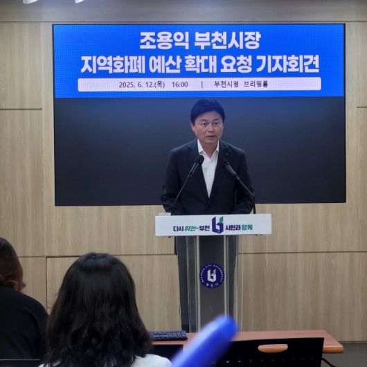 아시아투데이 장이준 기자 = 조용익 부천시장이 12일 시청 브리핑룸에서 기자회견을 열어 지역화폐 관련 국비 예산 대폭 확대를 요청했다.