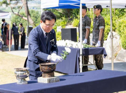 12일 강서구청에 따르면, 진 구청장은 “호국영령의 희생과 헌신 덕분에 오늘의 자유 대한민국이 존재한다”며 호국영령의 영전에 머리를 숙였다. 그러면서 “인고의 세월을 견뎌오신 유가족에게는 진심 어린 존경과 위로의 말씀을 드린다”고 말했다.