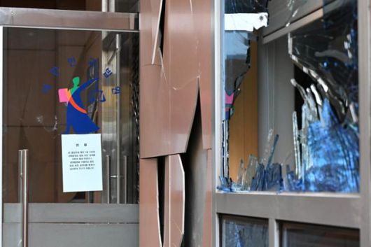 올해 1월 19일 새벽 당시 윤석열 대통령에 대한 구속영장을 발부한 서울서부지법 외벽과 유리창이 파손돼 있다. 한국일보 자료 사진. |