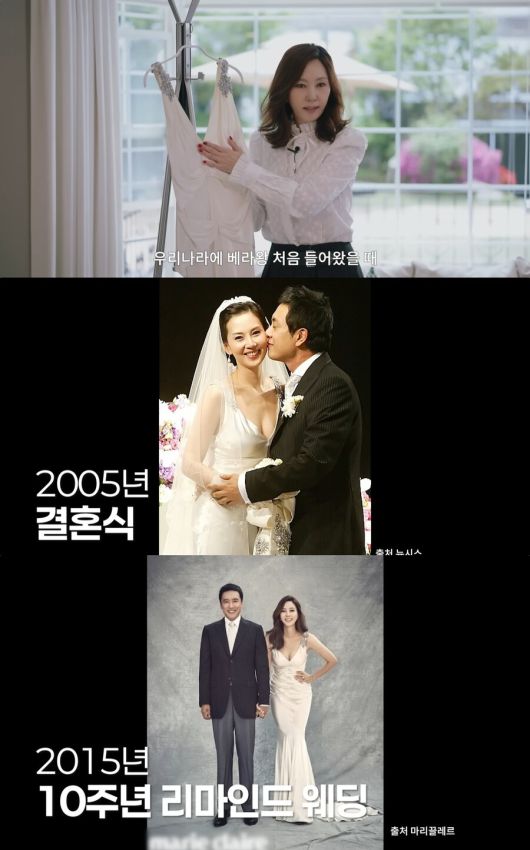 새 옷처럼 깨끗하게 보관돼 있는 김남주의 웨딩드레스는 베라왕의 이브닝 드레스. 함께 신었던 레이스 리본 장식의 화이트 구두도 공개했다. 김남주는 "우리나라에 베라왕이 처음 들어왔을 때 그때 처음으로 입었다"며 "10주년은 (이 드레스를 입고) 기념사진을 찍었는데 20주년은 안 찍을 것이다. 귀찮다"고 웃음지었다.
