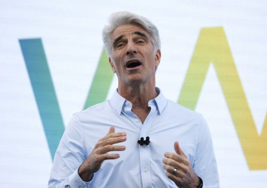 크레이그 페더리기 애플 소프트웨어 엔지니어링 수석부사장이 지난 9일(현지시간) 미국 캘리포니아 쿠퍼티노에서 열린 애플 세계 개발자 회의(WWDC)에 참석해 연설하고 있다. (사진=게티이미지) |