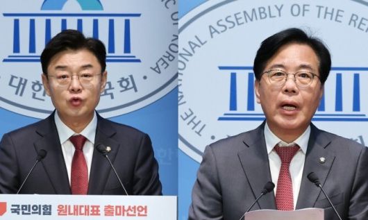 국민의힘 원내대표 선거에 출마한 김성원(왼쪽)·송언석 의원. 연합뉴스 |