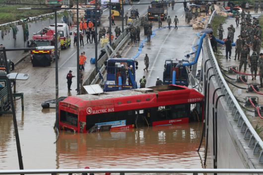 2023년 충북 청주시 오송읍 궁평2지하차도에서 발생한 지하차도 침수 현장에서 소방당국이 구조작업을 진행하고 있다. 뉴스1 |