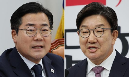 민주당 박찬대 원내대표(왼쪽)와 국민의힘 권성동 원내대표. 허정호 선임기자 |