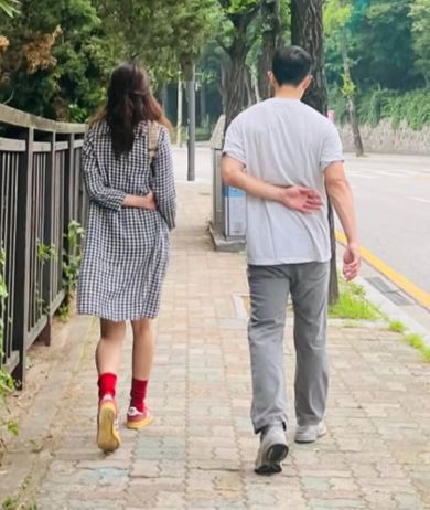 공개된 사진은 공효진과 남편 케빈오의 뒷모습으로 보이는 사진. 두 사람은 편안한 패션을 한 채 길을 걷고 있다. 같은 팔 동작을 한 채 길을 걷고 있는 부부의 모습에, 보는 이들의 시선이 집중됐다.