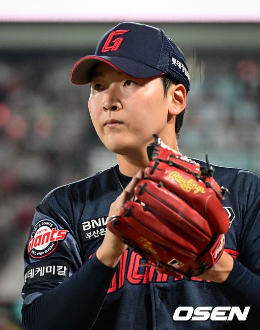 [OSEN=수원, 조은정 기자]12일 오후 수원 KT위즈파크에서 ‘2025 신한 SOL Bank KBO리그’ KT 위즈와 롯데 자이언츠의 경기가 열렸다. 이날 홈팀 KT의 선발투수는 소형준, 방문팀 롯데는 김진욱이 나선다. 8회말 2사 롯데 최준용이 KT 배정대에게 뜬공을 유도하며 이닝을 마친 뒤 기뻐하고 있다. 2025.06.12 /cej@osen.co.kr