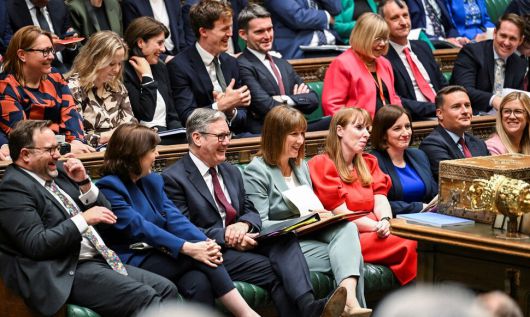 키어 스타머 영국 총리와 레이첼 리브스 영국 재무장관이 11일 영국 하원에서 2025년 지출 계획을 발표하고 의원들과 소통하고 있다. 로이터 연합뉴스 |