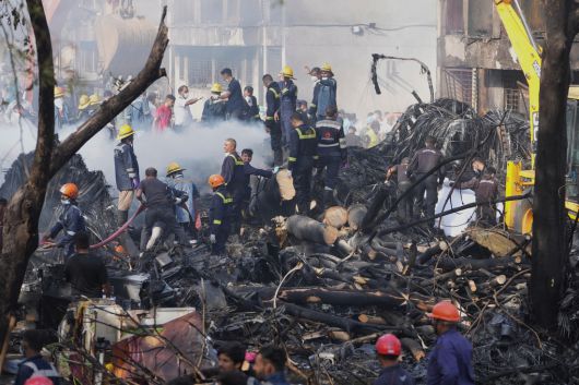 인도 아마드바드 사고 항공기가 건물 위로 추락한 모습. 출처 인도중앙산업보안군(CISF) 엑스 계정 |
