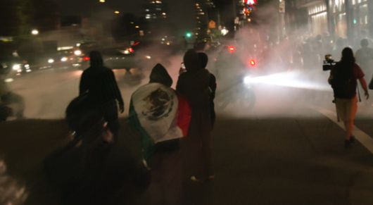 11일(현지시간) 오후 9시쯤 미국 캘리포니아주 로스앤젤레스(LA) 코리아타운에서 트럼프 행정부의 이민 정책에 반대하는 시위대가 기습 시위를 벌였다. 시위대의 코리아타운 진입은 지난 6일 시위가 시작된 후 처음이다. 강태화 특파원 |