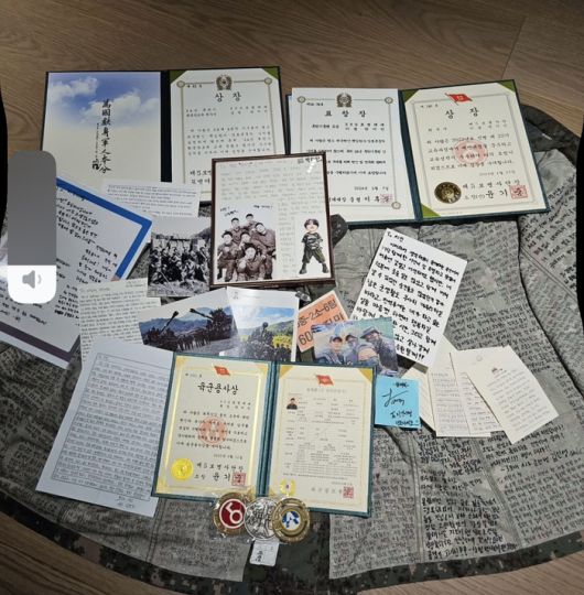 또한 다른 사진은 군생활을 통해 받은 상장과 표창장, 동료들의 편지 등을 담고 있으며 마지막 사진에는 함께 전역한 정국과 BTS 페스타 현장을 찾아 남긴 네컷의 사진이 담겨 있다.