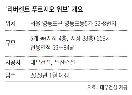 대우건설과 두산건설 컨소시엄은 이달 말 서울 영등포구 ‘리버센트 푸르지오 위브’를 분양할 예정이라고 12일 밝혔다. 영등포 뉴타운 사업 구역 중 하나인 ‘영등포 1-13구역’을 재정비해 공급하는 단지다.