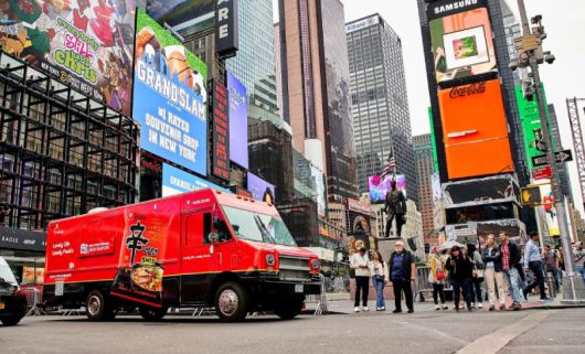 지난해 10월 미국 뉴욕 타임스스퀘어에서 농심이 진행한 ‘신라면 푸드트럭’ 홍보 행사에 시민들이 참여하고 있다. 농심 제공 |
