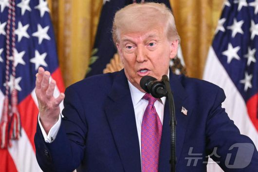 도널드 트럼프 미국 대통령이 12일(현지시간) 워싱턴DC 백악관 이스트룸에서 2035년까지 캘리포니아에서 새로운 가솔린 자동차 판매를 금지하도록 한 계획을 무효로 한 법안에 서명하기 전에 발언하고 있다. 트럼프 대통령은 25%인 외국산 자동차에 대한 관세를 그리 머지않은 시점에 더 올릴 수도 있다고 밝혔다. 2025.06.12 ⓒ AFP=뉴스1 ⓒ News1 류정민 특파원 |