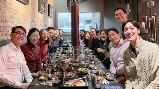 미국 매사추세츠 종합병원 종양학 교수인 한국계 리차드 리 박사 등 하버드 의대와 제휴 관계를 맺은 종합 의료 네트워크 ‘매사추세츠 제너럴 브리검(Massachusetts General BrighamㆍMGB)’에서 일하는 한인 의료인 모임 ‘김치(KIMCHI)’ 회원들이 보스턴 한 식당에서 모임을 가지며 단체 사진을 찍고 있다. 사진 리차드 리 박사 |