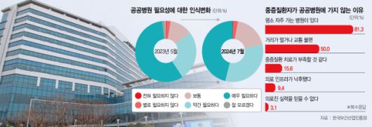 국민 10명 중 8명이 공공병원이 필요하다고 보고 있지만 정작 이용률은 크게 떨어진다는 조사 결과가 나왔다. 단골 병원이 있거나 접근성이 낮다는 점을 이용하지 않는 이유로 들었지만, 전문가들은 전반적 진료역량이 지역 종합병원보다 떨어지는 점이 이용률을 떨어뜨리는 근본적인 이유라고 지적하고 있다. 결국 이재명 정부가 보건의료 부문 공약으로 내세운 지역 공공병원 확대를 성공적으로 현실화하기 위해서는 획기적인 투자 확대를 통해 공공병원의 장비·인력 등 진료 인프라 수준을 높여야 할 것으로 보인다.