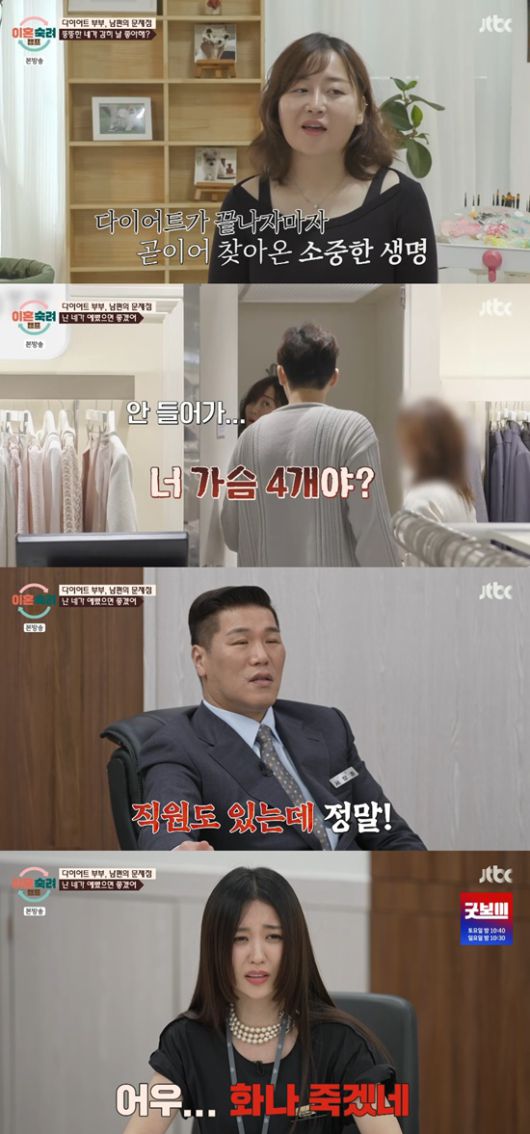 아내는 남편에게 "뚱뚱한 여자랑 부부관계를 한다는 게 자존심 상한다는 말도 하지 않았냐"고 했고, 남편은 "제가 90kg 넘는 여자랑 하는건 수치스러운 거다. 미친거다"라는 망언을 하기도 했다.