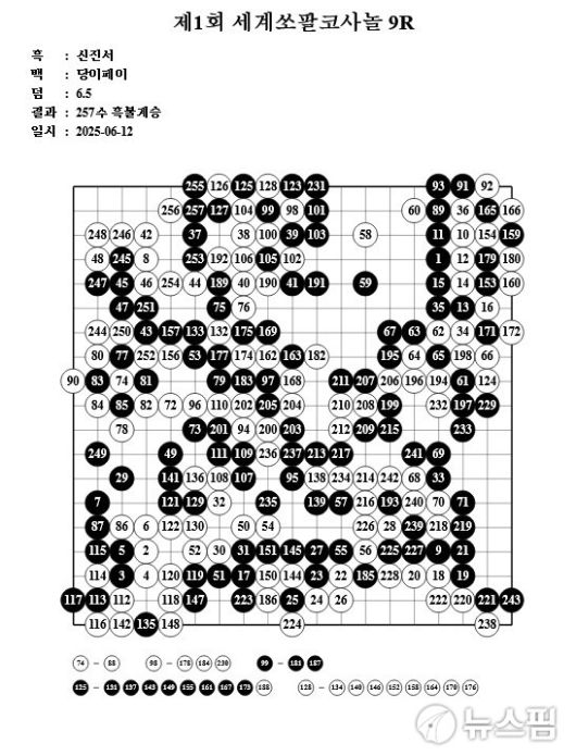[서울=뉴스핌] 김용석 기자 = 쏘팔코사놀 결승에 진출한 신진서 9단. [사진= 한국기원] 2025.06.13 fineview@newspim.com |