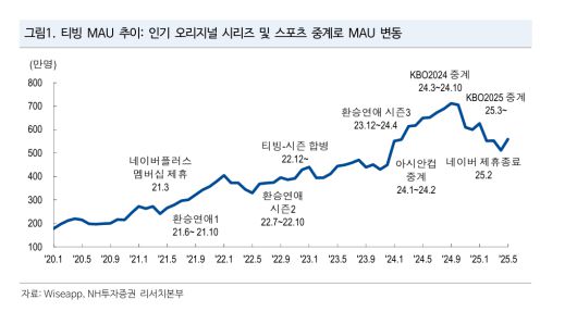 목표주가 상향의 근거로는 사업 환경 개선에 따른 밸류에이션 기준 상향이 제시됐다. NH투자증권은 미디어·콘텐츠 부문의 목표 주가수익비율(Target PER)을 기존 20배에서 30배로, 음악 부문은 기존 31배에서 35배로 상향 적용했다. 티빙-웨이브 통합 본격화와 중화권 시장 진출 가시화가 밸류에이션 재평가의 근거로 작용했다는 설명이다.