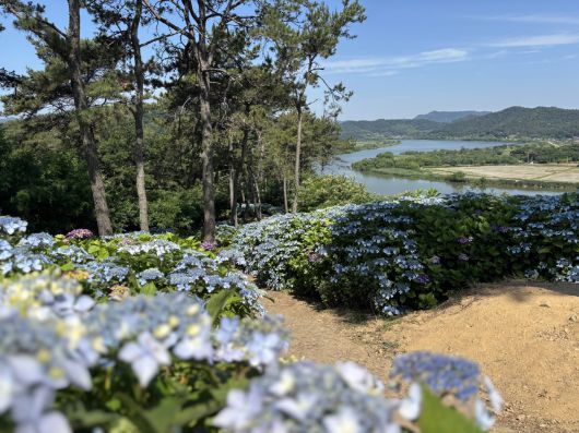 한반도지형 전망대 일원 수국꽃길은 한반도 지형을 본뜬 특색 있는 풍광과 수국의 어우러짐 속에서 인생사진을 남기며 특별한 추억을 만들 수 있어 시민과 관광객에게 매년 인기가 높은 관광지로 손꼽힌다.