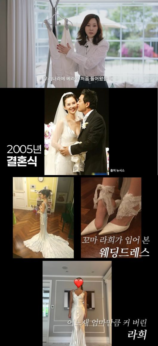 이어 "우리나라에 베라왕 처음 들어왔을 때 제가 처음으로 입었다. 결혼 10주년 때 리마인드 웨딩을 했었는데 20주년은 안 찍을 거다. 귀찮다. 저 드레스가 맞을지도 모르겠고"라며 "사실 이건 웨딩드레스가 아니다. 지금은 예쁜 게 너무 많은데 그때는 예쁜 게 많이 없었다. (원래는) 이브닝 드레스"라고 말했다.