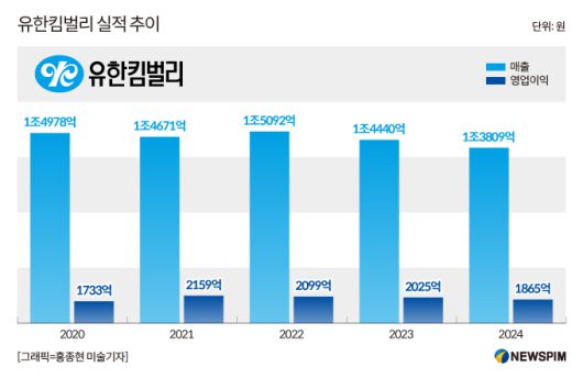 유한킴벌리는 최근 2년 연속 실적이 하락세다. 지난해 매출은 1조3809억원으로 전년(1조4440억원) 대비 소폭 감소했고, 영업이익도 1865억원으로 8%가량 줄었다. 지난 1월 이제훈 전 홈플러스 대표를 신임 사장으로 선임했지만 올해도 실적 개선이 쉽지 않다는 관측이 우세하다.