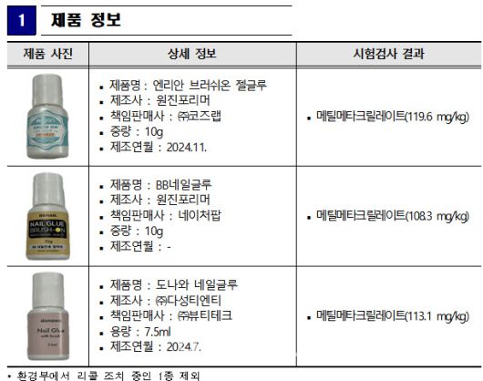 [세종=이데일리 하상렬 기자] 시중에 유통되는 미용 접착제 조사 결과 일부 제품에서 금지물질이 검출됐다.