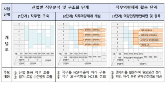 직무역량 습득에 적합한 자격·교육·훈련 정보를 제공하고 산업현장 맞춤인력 양성 및 직무역량 중심 노동시장 구현을 지원한다는 설명이다.