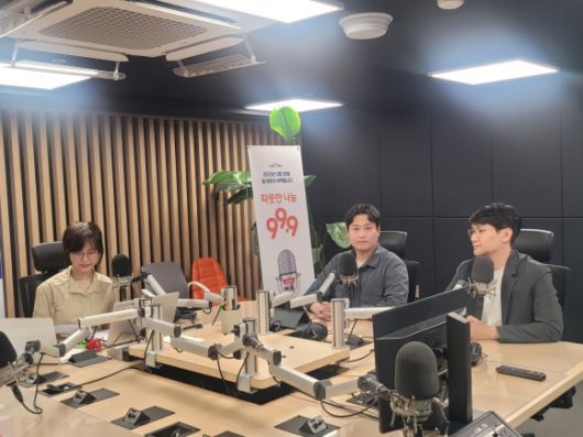 [사진= 6월 12일 OBS 라디오 ‘오늘의 기후’에 경기환경에너지진흥원 김용환 주임(가운데), 이청원 주임(우측)이 출연하여 주택태양광에 대한 소개를 하고 있다] |