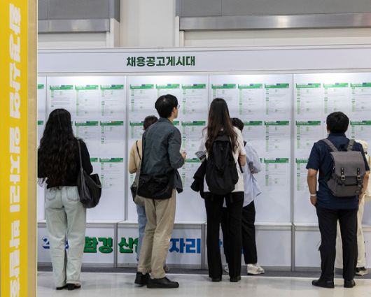 지난달 27일 서울 서초구 aT센터에서 환경부 주최로 개막된 2025 환경산업 일자리 박람회 참가자들이 각 기업이 게시한 채용공고를 살펴보고 있다 [사진=연합뉴스] |