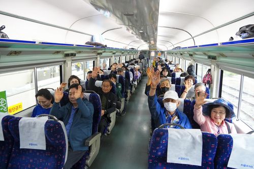 (광주=연합뉴스) 장덕종 기자 = 6·15남북공동성명 25주년을 기념 운행하는 '광주평화열차'가 13일 오전 355명의 탑승객을 태우고 광주 효천역을 출발, 경기 파주시 비무장지대(DMZ)로 향했다.