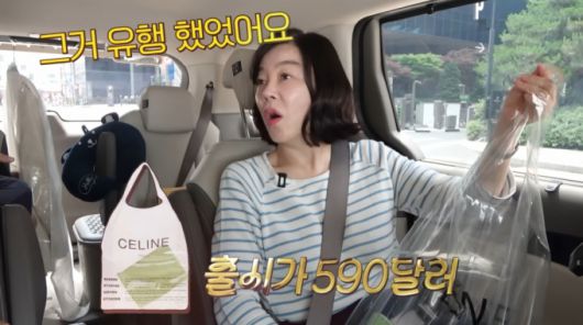 최화정이 신박한 명품 비닐백을 선보였다. 비닐백과 가죽 파우치가 세트인 해당 제품은 2018년 약 81만원에 출시됐다. /사진=유튜브 갈무리 |
