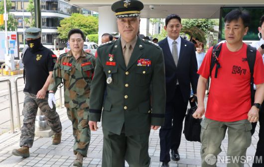 [서울=뉴스핌] 양윤모 기자 = 이재명 대통령이 채상병 특검으로 이명현 전 국방부 검찰단 고등검찰부장을 지명한 가운데, 해병대 '채 상병 순직 사건'과 관련해 항명 및 상관명예훼손 혐의로 기소된 박정훈 전 해병대 수사단장(대령)이 13일 서울 서초구 서울고등법원에서 열린 항소심 첫 공판에 출석하기위해 이동하고 있다. 2025.06.13 yym58@newspim.com |