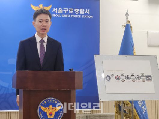 김성훈 서울 구로경찰서 수사1과장이 13일 범죄수익금 세탁 경위에 대해 발표하고 있다.(사진=이영민 기자) |