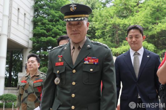 [서울=뉴스핌] 양윤모 기자 = 이재명 대통령이 채상병 특검으로 이명현 전 국방부 검찰단 고등검찰부장을 지명한 가운데, 해병대 '채 상병 순직 사건'과 관련해 항명 및 상관명예훼손 혐의로 기소된 박정훈 전 해병대 수사단장(대령)이 13일 서울 서초구 서울고등법원에서 열린 항소심 첫 공판에 출석하고 있다. 2025.06.13 yym58@newspim.com |