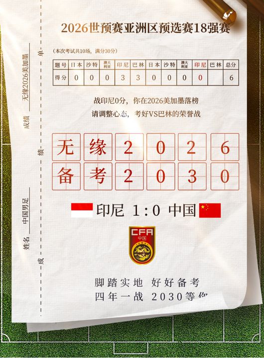 중국은 지난 10일 충칭 롱싱 축구전용구장에서 열린 2026 FIFA 북중미 월드컵 아시아지역 3차 예선 C조 최종전에서 바레인을 1-0으로 꺾긴 했지만, 본선 진출은커녕 플레이오프 진출권조차 얻지 못하며 조별리그 탈락이라는 쓴잔을 들이켰다. 이번 승리로 중국은 3승 7패(승점 9점)로 3차 예선을 마감하며 조 최하위만 면했을 뿐이다.
