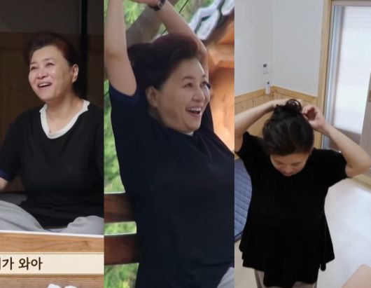 오은영 박사는 문을 열며 "이야 공기가 와"라며 감탄을 내뱉ㄴ는가 하면, 민낯으로 카메라 앞에 등장해 사자머리 대신 똥머리를 묶으며 스트레칭에 나서 눈길을 끈다.