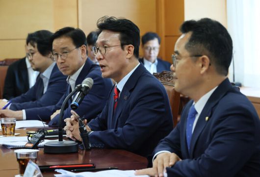 김민석 국무총리 후보자가 13일 서울 종로구 통의동 금융감독연수원에 마련된 청문회 준비단 사무실에서 식품·외식업 협회와 전문가 등이 참석한 가운데 열린 밥상물가 안정을 위한 경청 간담회에서 발언하고 있다. 연합뉴스 |