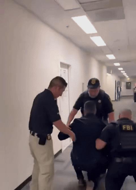 사건 당시 영상을 보면, 복도에서 ‘FBI’(미연방수사국)라고 적힌 조끼를 입은 남성들이 파딜랴 의원의 머리가 바닥에 닿도록 제압했다. 이들은 “손을 등 뒤로 보내라”고 지시한 뒤 파딜랴 의원의 두 손목에 수갑을 채웠다.