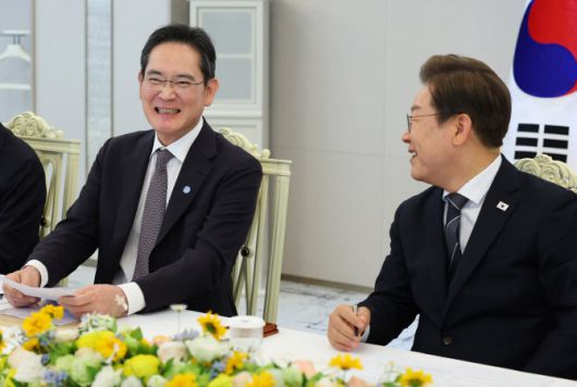이날 간담회에 참석한 이재용 삼성전자(005930) 회장은 “실용적 시장주의라는 국정철학은 삼성뿐 아니라 참석한 기업들, 우리나라 모든 기업에 힘이 될 것”이라고 발언했다. 이 회장은 이 대통령 취임 이후에 이 대통령의 자서전을 읽어봤다고 언급하기도 했다.