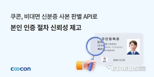 비즈니스 데이터 플랫폼 기업 쿠콘(대표 김종현)은 '비대면 신분증 사본 판별' API를 통해 기업 비대면 본인 인증 절차 신뢰성과 안정성을 한층 강화한다고 13일 밝혔다.