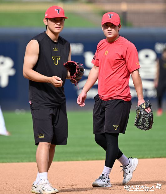 윤도현도 팬들이 어떤 시나리오를 원하는지 알고 있었다. 지난해 9월 "(김)도영이와 같은 팀에서 뛰게 된 이후로는 자극을 받은 적이 전혀 없었다. 친구로서 도영이가 대단한 것 같고, 자리잡은 걸 보면서 '나도 좋은 모습을 보여줘야겠다'고 생각했다"며 "도영이와 함께 라인업에 포함됐을 때 '그림을 만들어 보자'고 했다. 홈런 치면 같이 껴앉자고 하기도 했다"고 얘기했다.