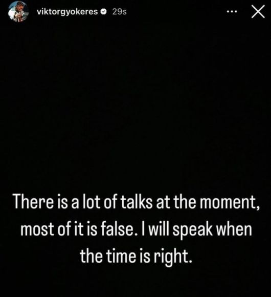 여러 추측이 오가는 상황에서 요케레스가 직접 입을 열었다. 자신의 SNS에 "지금 많은 이야기가 오가고 있는데 대부분은 거짓이다. 적절한 때가 되면 직접 말하겠다"라고 말했다.
